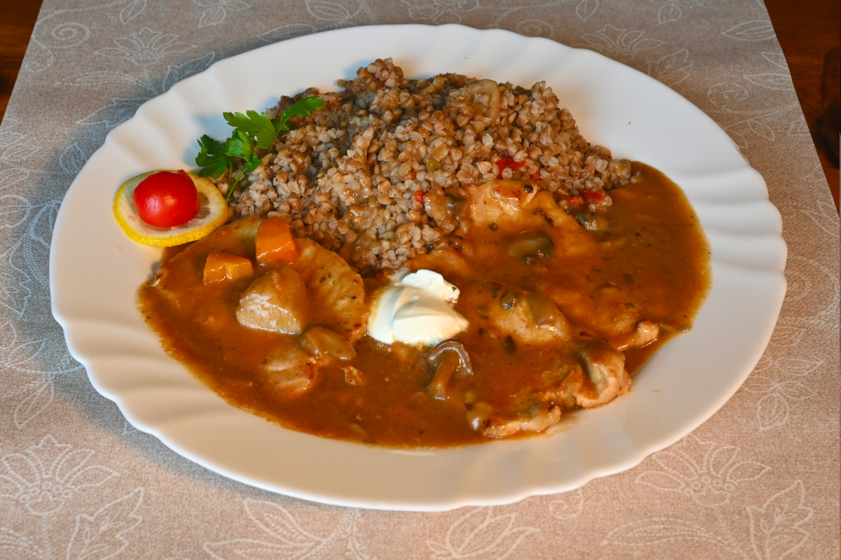 • Roast Pork with Cracklings – a tender, slow-roasted pork served with crispy cracklings, mashed potatoes, and sauerkraut